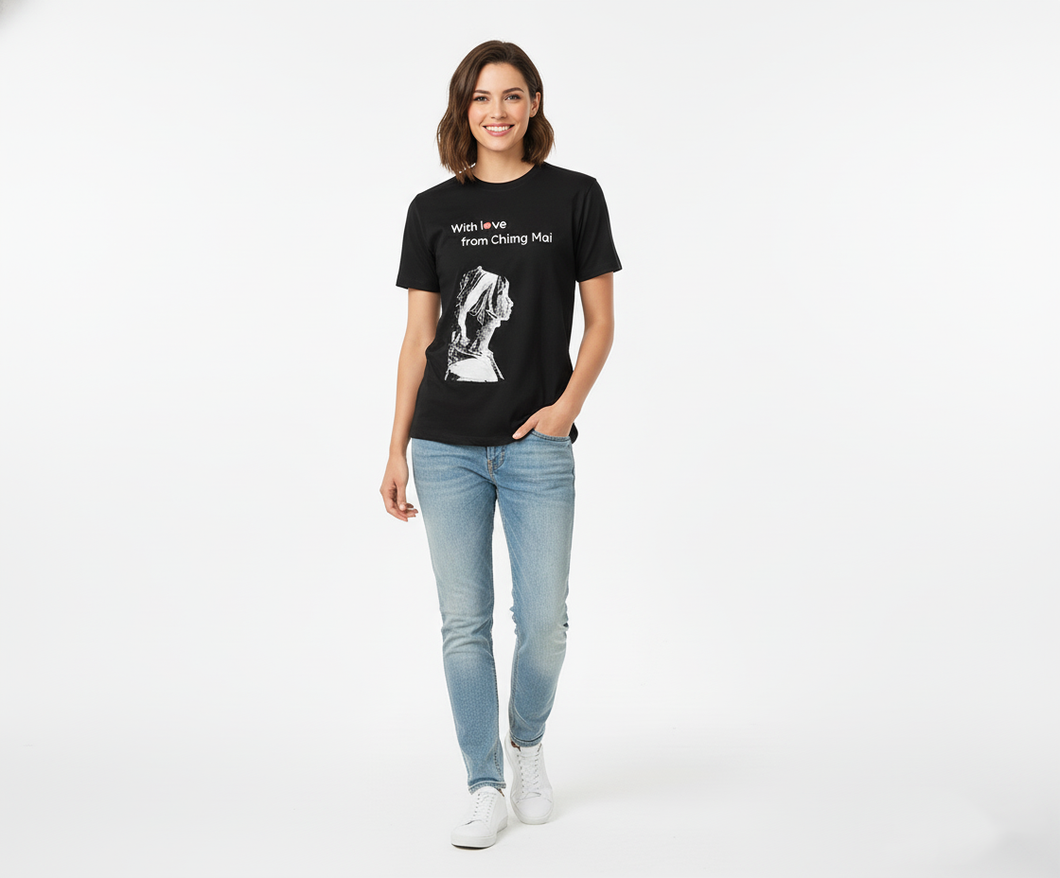 เสื้อตัวนี้ผสมผสานความเรียบง่ายเข้ากับเอกลักษณ์ทางวัฒนธรรมได้อย่างลงตัว ผ้าคอตตอนคุณภาพดีสวมใส่สบายตลอดวัน พร้อมโลโก้ ฟ้าล้านนาอาร์ตมิวเซียม ที่โดดเด่น สะท้อนเสน่ห์แห่งความคิดสร้างสรรค์ของเชียงใหม่ได้อย่างชัดเจน.